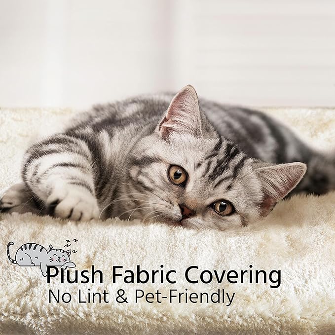 - CAT EAR TOP PERCHES&LARGE CAT HOUSE: The cute cat-ear shaped raised edges of the top perches add a lovely bit of charm and cuteness to the piece.There are also 2 cozy fluffy condos for cats to play hide-and-seek and nap in
