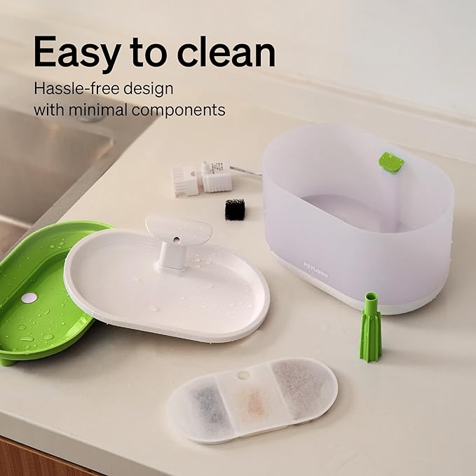 - Easy to Set Up & Clean: The PETLIBRO cat water dispenser is easy to assemble and disassemble for cleaning and replacement. For your pet’s health, it's recommended to change the filters and clean the pump and fountain every 2 weeks. (Please search "B0949GVFPX" to buy official replacement filters.)