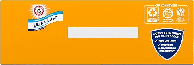 - PET-FRIENDLY WITH BAKING SODA Odor control plus Baking Soda freshness is the secret behind ARM & HAMMER Ultra Last Unscented Clumping Cat Litter Coated with ARM & HAMMER Baking Soda, this virtually dust free cat litter (99%) is tough on odors
