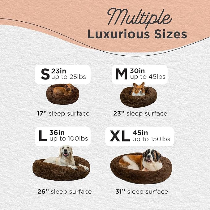 Best Friends by Sheri Original Calming Donut Dog and Cat Bed, Lux Faux Fur, Dark Brown, (30in x 30in) - Anxiety Relief for Pets Up to 45 lbs