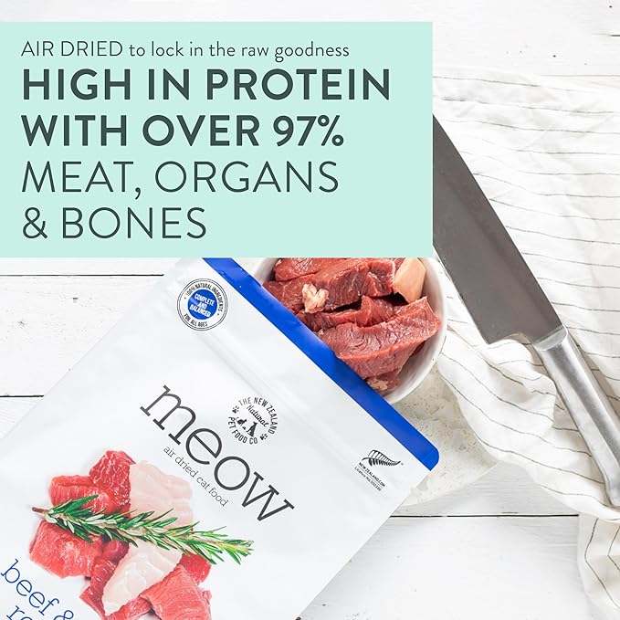 Meow Air Dried Cat Food - Beef & Hoki Recipe - Topper, Mixer or as Cat Training Treats, All Life Stages - 26.5 oz