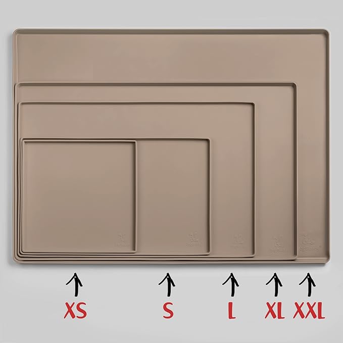 DogBuddy Dog Food Mat – Waterproof Dog Bowl Mat for Food and Water, Silicone Pet Feeding Mats for Floors, Non-Slip Placemat with High Edges for Dogs Bowls, Puppy Essentials (XS: 11" x 11", Taupe)