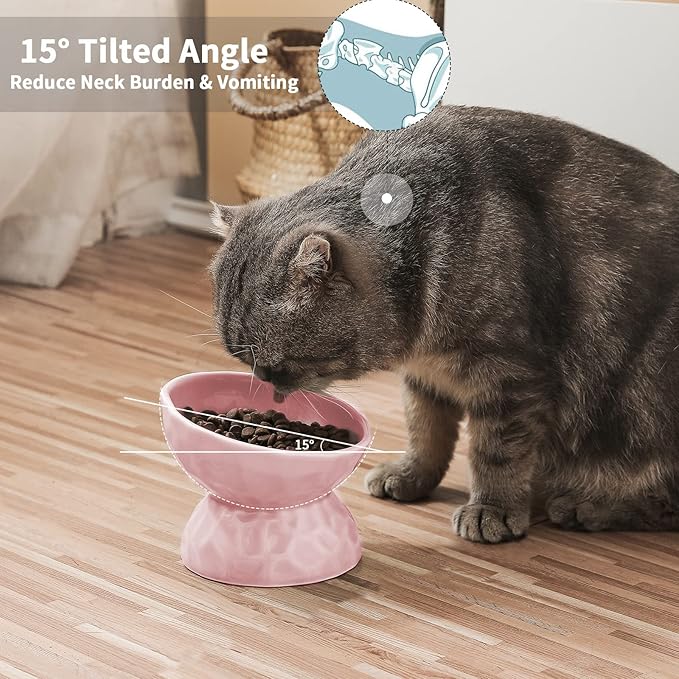- Comfortable Feeding Height - Elevated cat bowl, to protect their cervical spine. It helps cat swallow more easily and alleviates their occasional vomiting when they are eating.