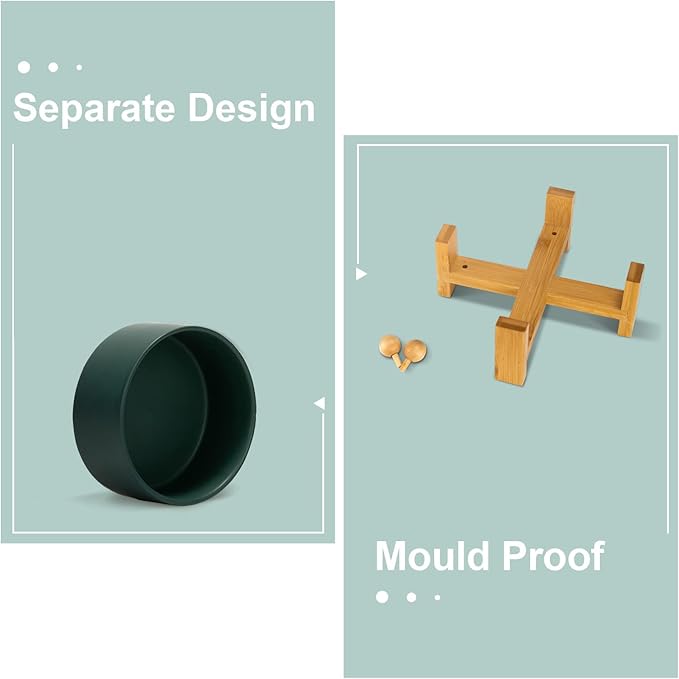 - CERAMIC MATERIAL: SPUNKYJUNKY Tilted Dog Bowl Set uses high temperature fired safe ceramics with a heightened wooden stand to provide a healthy feeding environment for your pet