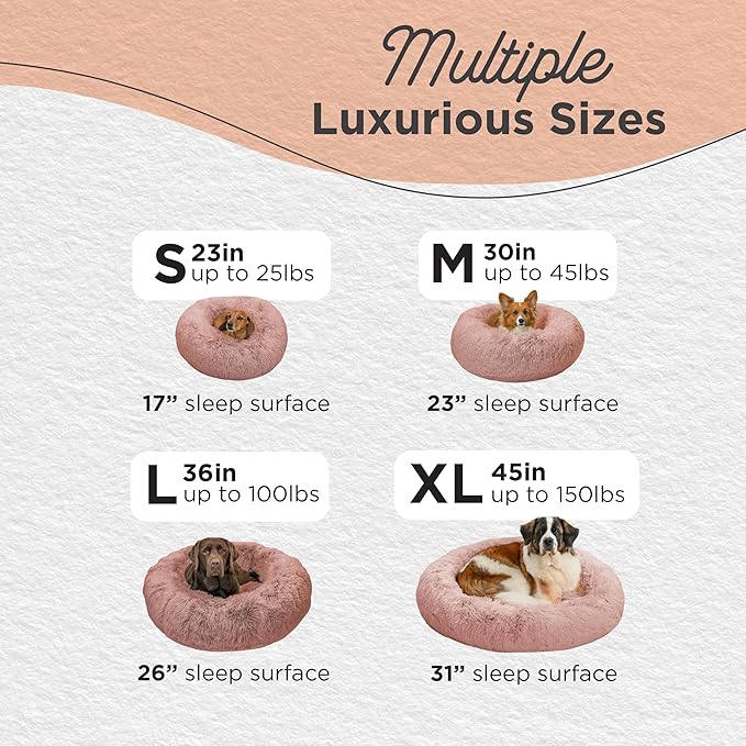 - Calming Dog Bed: 30-inch donut cuddler provides a cozy haven designed to help soothe anxiety and stress in medium dogs up to 45 lbs; ideal for breeds such as Cocker Spaniel, Beagle, Boston Terrier, Shiba Inu, Corgie, French Bulldog, English Bulldog