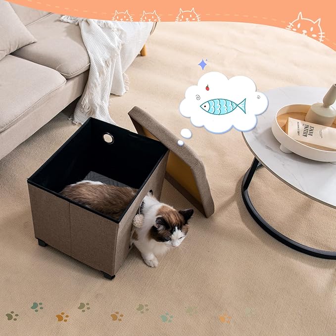 - 【Cat Cube with Wooden Feet】 Feet made of solid wood, sturdy and stable, keep the bottom of the cat house away from dirt, and also keep your cat dry & comfortable.
