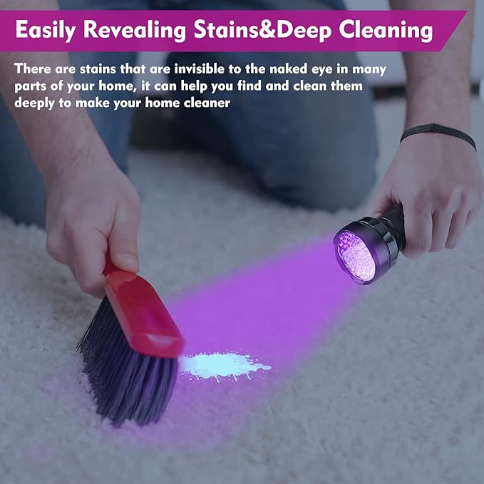 - Multipurpose & Practicality: This 51 LED UV flashlight is not just for cleaning! It doubles as a scorpion detector, counterfeit currency verifier, and can reveal hidden ink on passports or other official documents, illuminate body art, check bed bugs, etc.