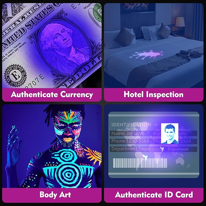 - Multipurpose & Practicality: This 100 LED UV flashlight is not just for cleaning! It doubles as a scorpion detector, counterfeit currency verifier, and can reveal hidden ink on passports or other official documents, illuminate body art, check bed bugs, etc.