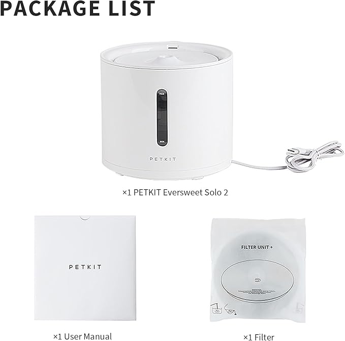 - [Wireless Pump Pet Water fountain] PETKIT EVERSWEET SOLO 2 comes out with upgraded wireless pump 3.0, anti dry-burning, longer lifetime, easy to assemble, extremely quiet(Lower than 25dB)..