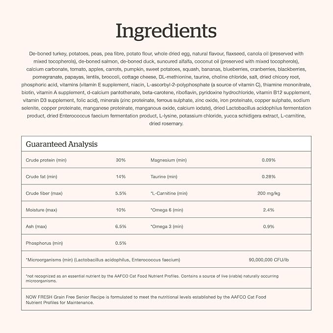 Now Fresh Grain-Free Senior Dry Cat Food with Turkey, Salmon & Duck, Premium Kibble Made with Real Meat & Fish, Chicken-Free Recipe, Supports Healthy Weight Management, 16 lb Bag