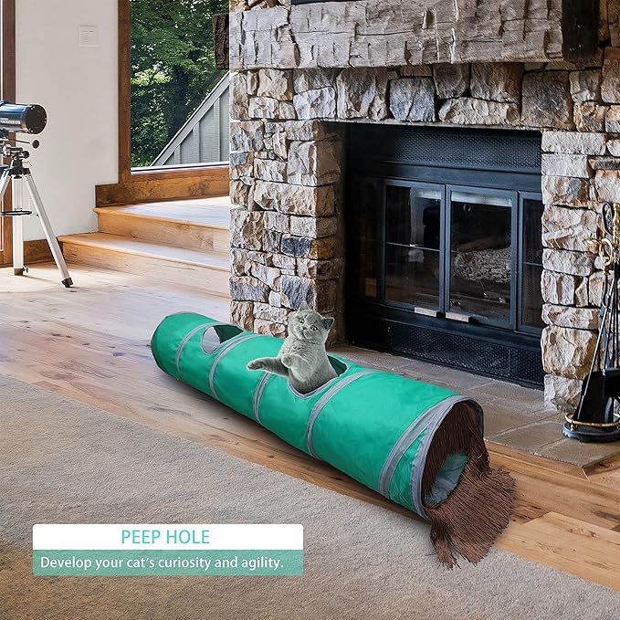 - 3-IN-1 FUNCTION: Fringe cat tunnel include crinkle, fringe and dangling ball toy, stimulates cats for endless pouncing, playing and hiding. It can be used for cats, kittens, rabbits, ferrets and puppies.