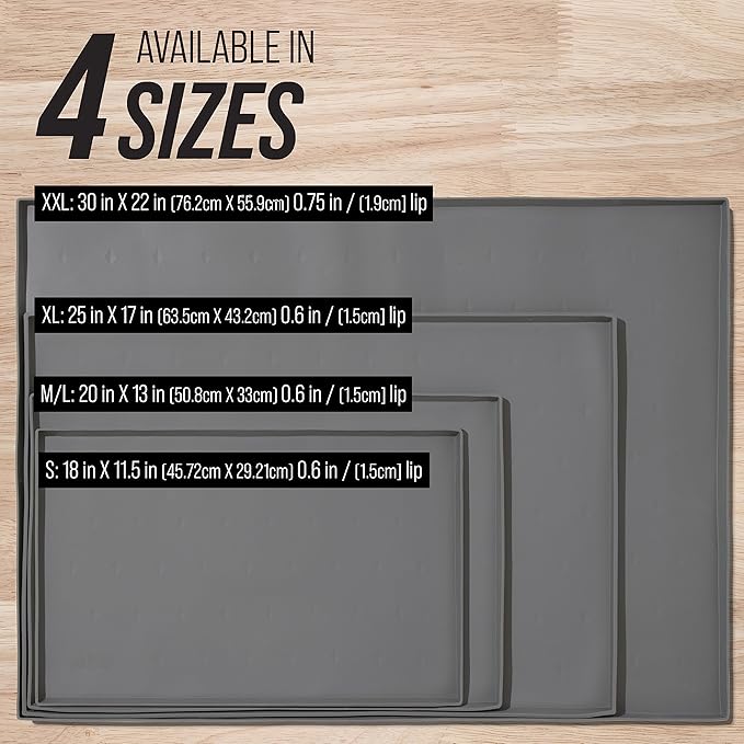 - Extra-Tall Spill Proof Lip: The Leash Boss dog water mat comes with .6" raised edges to contain kibble and prevent water and spills from rolling over the edge. The perfect tray for dogs and cats who are energetic eaters!