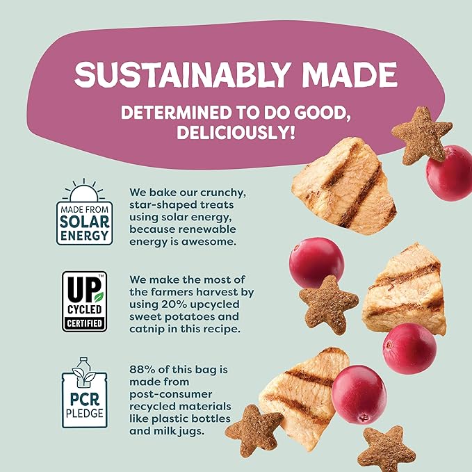 - Cat Treats That Support Digestive Health: Whether you have a celeb or average kitty they will love our blend of savory chicken with a hint of tart cranberries. These crunchy, star-shaped, bite-sized treats are packed with both pre & probiotics, which help support digestion! Includes one 2.5 oz bag.