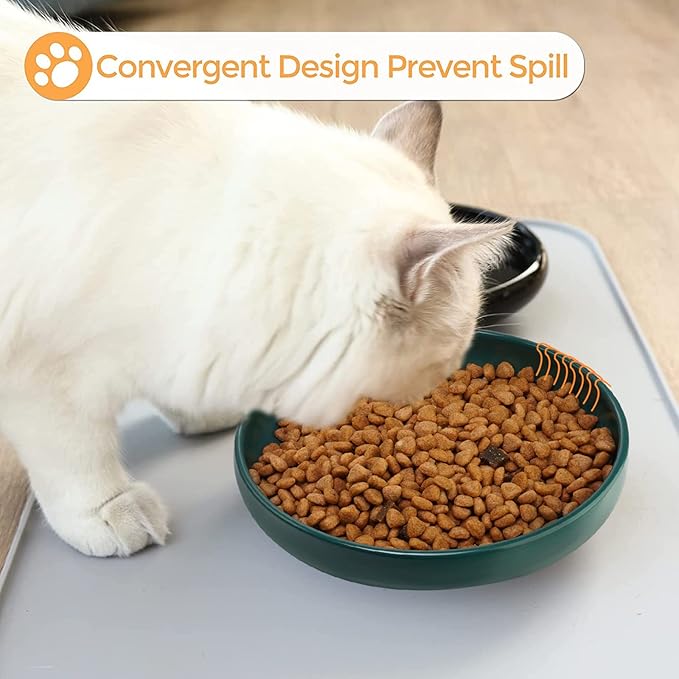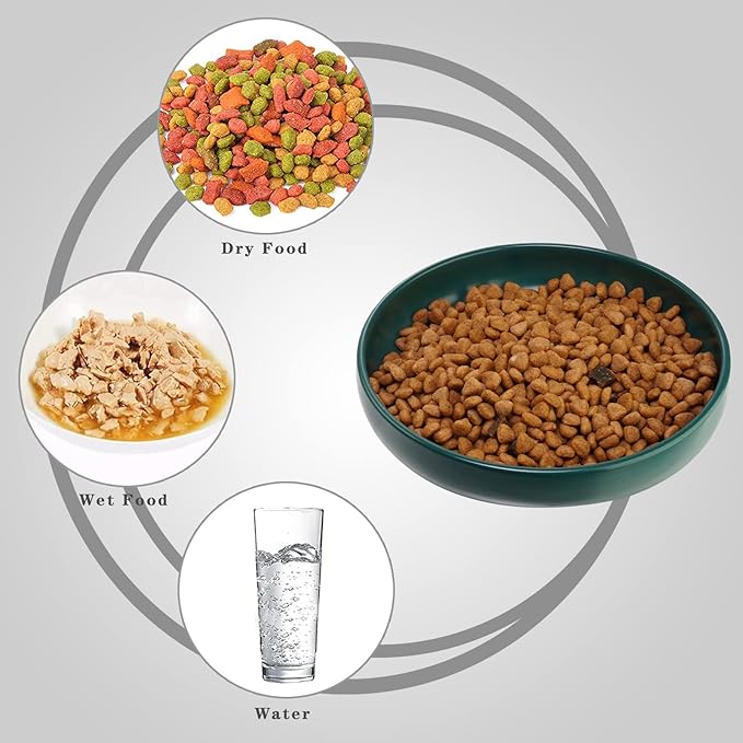 - Eco Friendly Ceramic Material: Different from other plastic cat dishes which contain chemicals that disrupt an animals hormonal balance and can harbor insanitary things by scratches and micro-gouges. Our long-lasting ceramic cat bowls which offer a healthy alternative to plastic that is odorless and lead-free.
