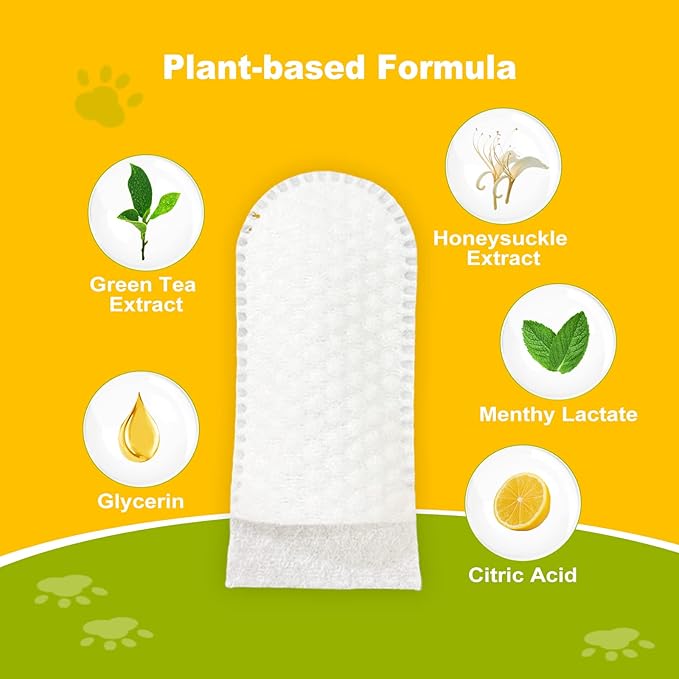 - Natural & Healthy Formula: The formula added to the wipes are carefully vetted and proven to be harmless to your pet's health. Grapefruit Seed Extract & Honeysuckle, which are not only good for pets with allergies, but also will help the pet owners, groomers and veterinarians take care of the furry babies suffering from plaque and tartar that can cause infection. Regular use will help in refreshing oral breath and preventing tartar buildup.