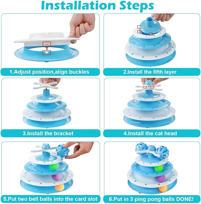 - Detachable 4 Level: Multi-level durably turntable interactive cat toy with cute cat head shape on the top level. Fun to entertain your cat for hours.