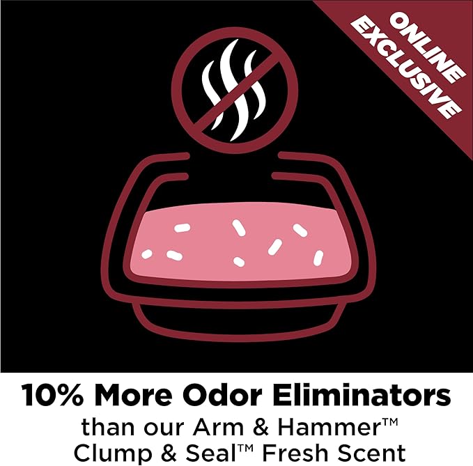 - 10% MORE ODOR ELIMINATORS: Benefit from a 10% increase in odor-eliminating power with this clump and seal cat litter Arm and Hammer developed that features ARM & HAMMER Baking Soda for unparalleled odor management.