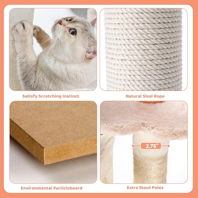 - Chic Flower Design: The unique flower-themed cat tree not only offers endless entertainment for your cats but also serves as a stylish home decor piece, enhancing the aesthetic appeal of your living space.