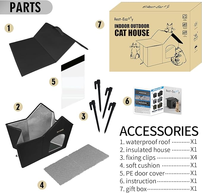 - WATERPROOF MATERIAL - The waterproof cat houses for outdoor cats are made of waterproof materials. If the outside cat house needs are placed outdoors, a good waterproof roof will keep it dry.
