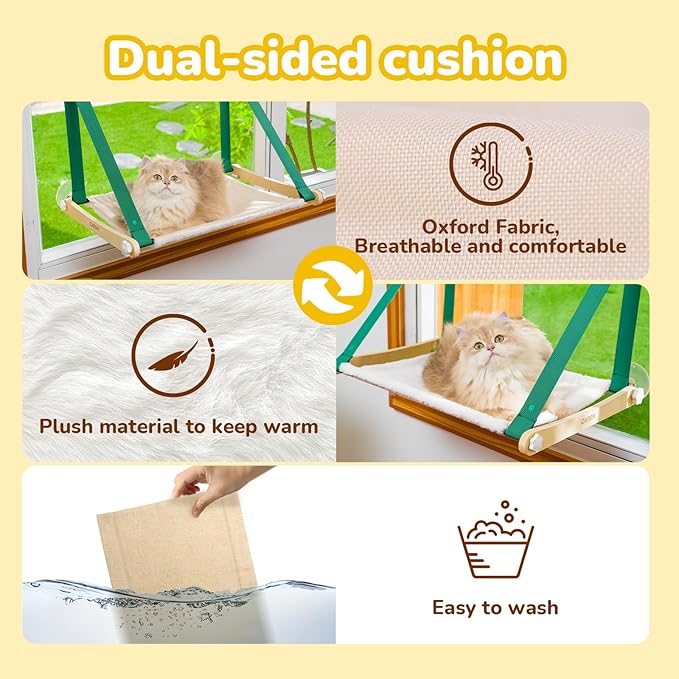 - 【Machine Washable】Cat hammock seat blanket and cat window perch cushion, tent cover cloth can be removed, can be washed by hand and machine, khaki high-quality fabric durable and washable,so that cats enjoy a comfortable and clean cat bed.