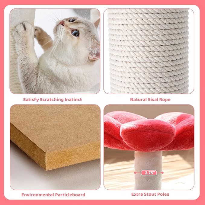 - 🐾Cute and fashionable design: the lovely flower full of design sence. The whole cat tree not only brings cats enjoyment, but also will be the highlight of your home decoration.