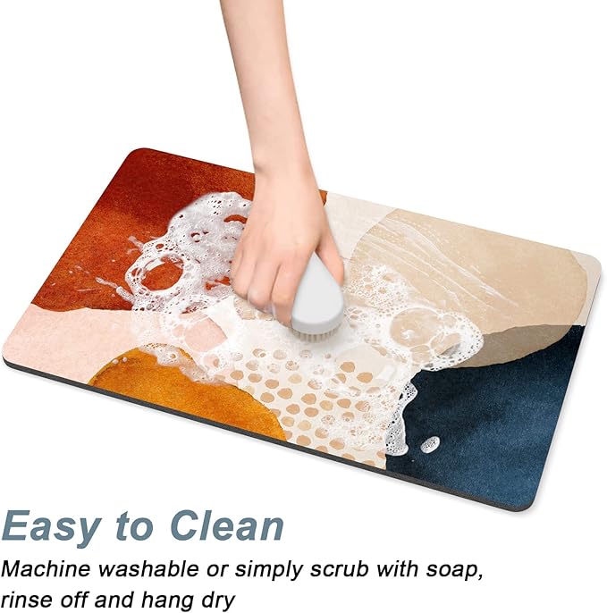 - Super Absorbent Placemat: Aesthetic dog food mat surface is made of absorbent suede with soft, anti-fray which can quickly absorb liquid and wet food stains to prevent prevents food & water from spilling onto floor