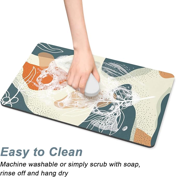 - Super Absorbent Placemat: Aesthetic dog food mat surface is made of absorbent suede with soft, anti-fray which can quickly absorb liquid and wet food stains to prevent prevents food & water from spilling onto floor