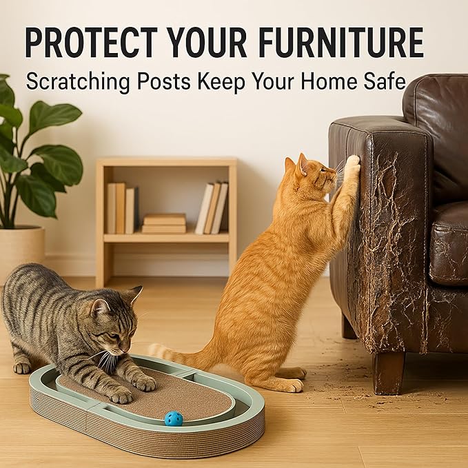 - SCRATCHING POSTS FOR INDOOR CATS: Scratching pad designed for all kinds of cats and kittens, the extra large scratch pad pro for cats comes with an attractive toy ball and an irresistible mint ball design for added playtime and stimulation, the bell ball in the track provides hours of mental stimulation and exercise for your cat. This cat scratch bed is also great for cats to use for paw training, muscle training and stress relief. It also satisfies your cat's hunting instincts.