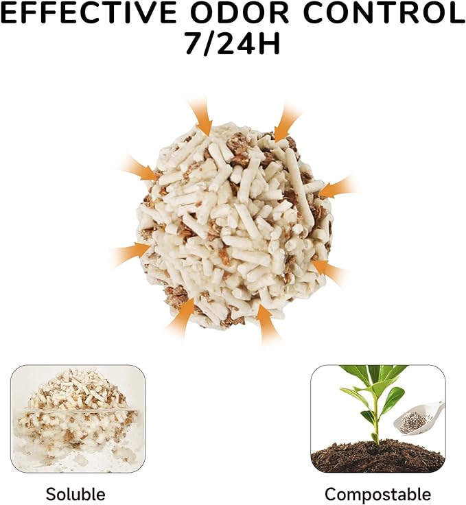 - 24/7 ODOR CONTROL: We add apple wood pellet which is the natural cat litter deodorizer, ensuring the litter box remains fresh and odor-free for longer periods. Mixed 80% soy cat litter and deodorant particles, the tofu cat litter can absorb the urine quickly and reduce unpleasant smell. Keep your home smelling fresh.