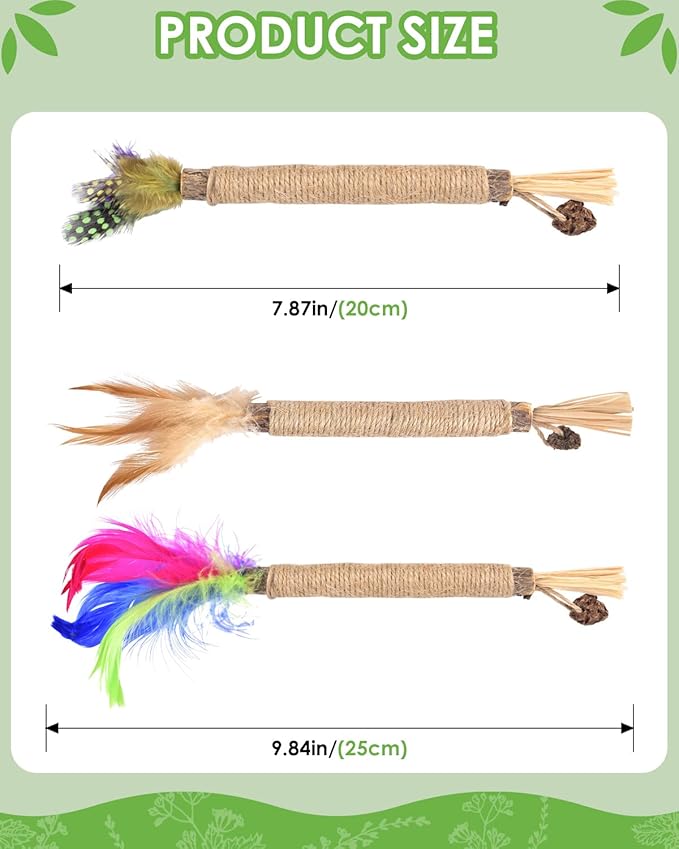 - 【Natural Silvervine Sticks】Our silvervine sticks are made from natural silvervine, raffia, sisal rope and gall fruit (fruit of silvervine), there are absolutely safe for cats to chew and bite.
