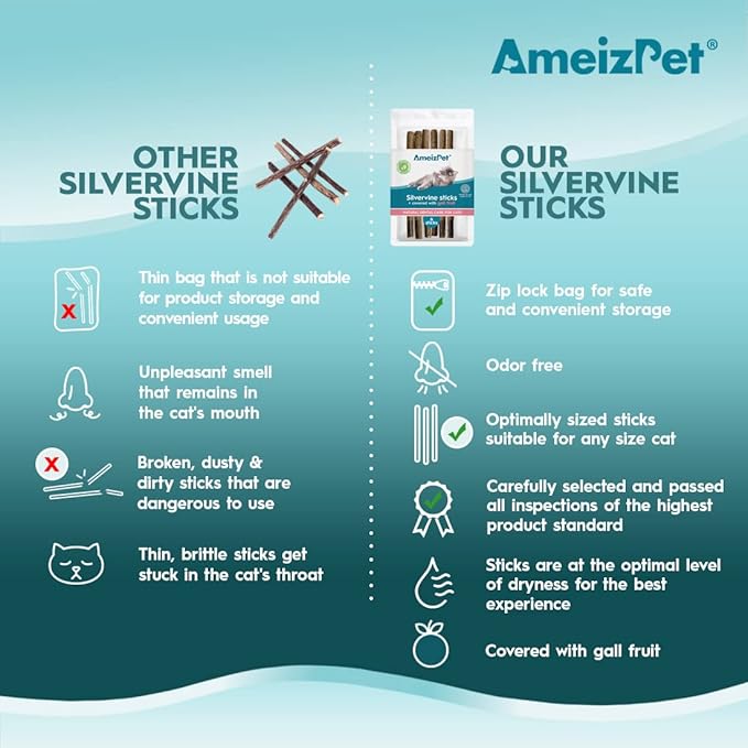 Silvervine Sticks for Cats, Chew Sticks Covered with Gall Fruit Dust - Natural Matatabi Cat Dental Care, Catnip Cat Teeth Cleaning, 6 Pcs