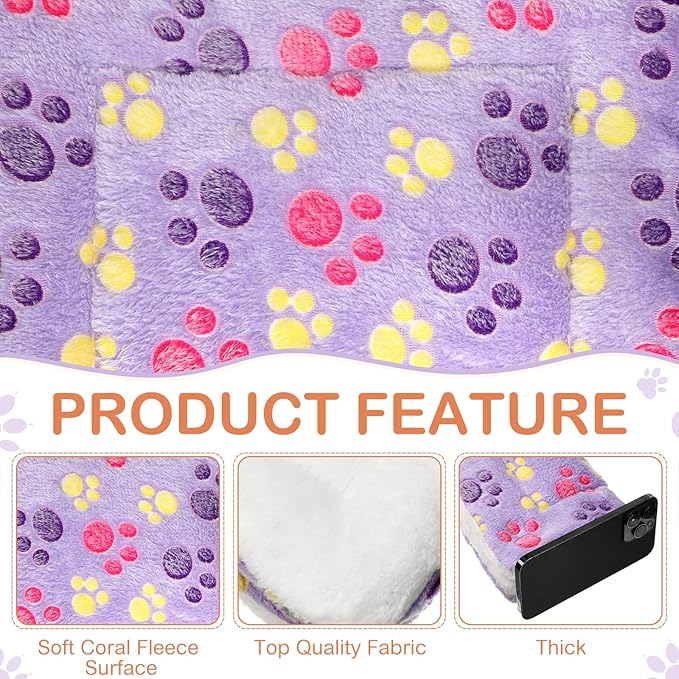 Haull 4 Pcs Waterproof Guinea Pig Bedding Winter Guinea Pig Bed Plush Cage Liners Soft Dog Cat Mat Reversible Winter Cozy Animal Pee Pad Hamster Bed Mat for Bunny(Paw,13 x 10 Inch)
