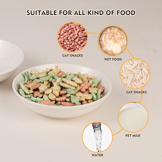 - Safe & Healthy Material - The cat bowls are made of premium food graded ceramic that fired at high temperatures, sturdy and durable, cadmium and lead free, non-toxic and harmless.