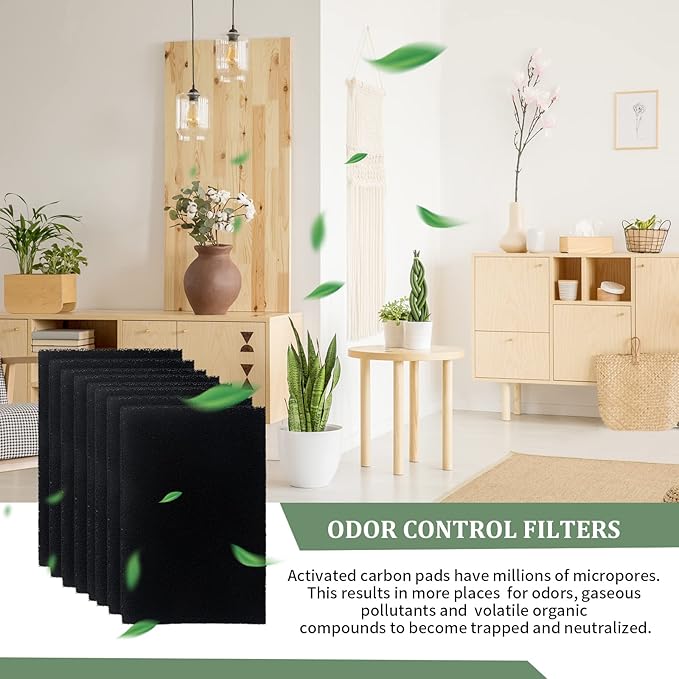 - 【EASY REPLACEMENT】Without any measuring or trimming, fresh replacement 4x6 activated cat litter box carbon filters install in seconds. Simply remove the old filter, replace it with a new one and enjoy uninterrupted cat box odor control