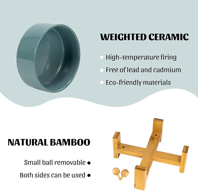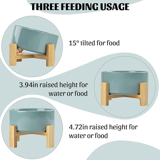 - CERAMIC MATERIAL: SPUNKYJUNKY Tilted Dog Bowl Set uses high temperature fired safe ceramics with a heightened wooden stand to provide a healthy feeding environment for your pet