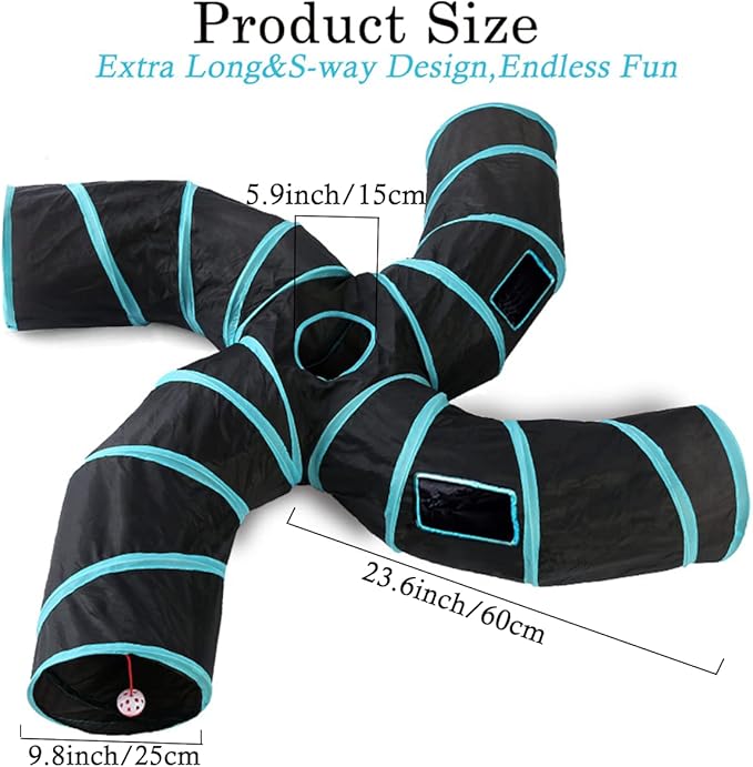 - 【Upgrade S-type Tunnel】Upgrade 5 peephole tube,the Long tunnel with 4 S-way tunnels,each way has 23.6inch.The large tunnel with peephole & ball toy,the s type can increase mystery more than the straight type, and provide more entertainment space.
