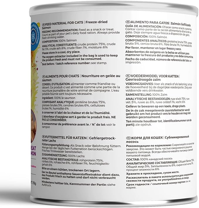 - Source of 100% Fresh Salmon Single Ingredient:RANOVA grain free cat freeze dried treats uses fresh salmon without any artificial nutrition additions, and maintains the original freshness and natural nutrition of the ingredients.
