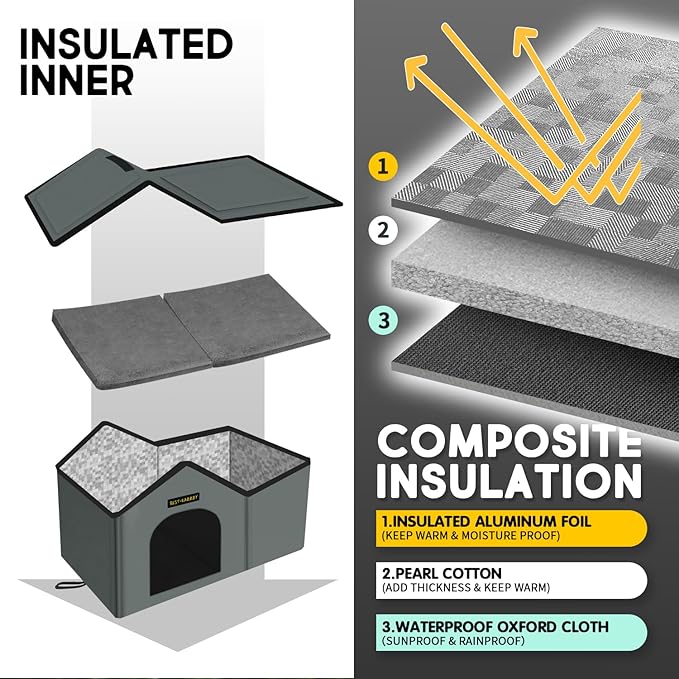 - UTILITY MODEL CREATION - the built-in visible insulation will use the pet’s body heat to keep them warm. And the 2024 new waterproof house canopy will greatly increase weather resistance.