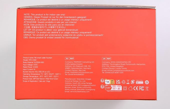 - Stay Hydrated All Days: 4 L water capacity cat water dispenser provide enough water for multiple pets to drink from and you don't have to worry that the water will run out when you're away from home. 210ml backup water on tray still allow your furkid to be well hydrated when out of power. The pet fountain is stable enough that your naughty cats never knock it over
