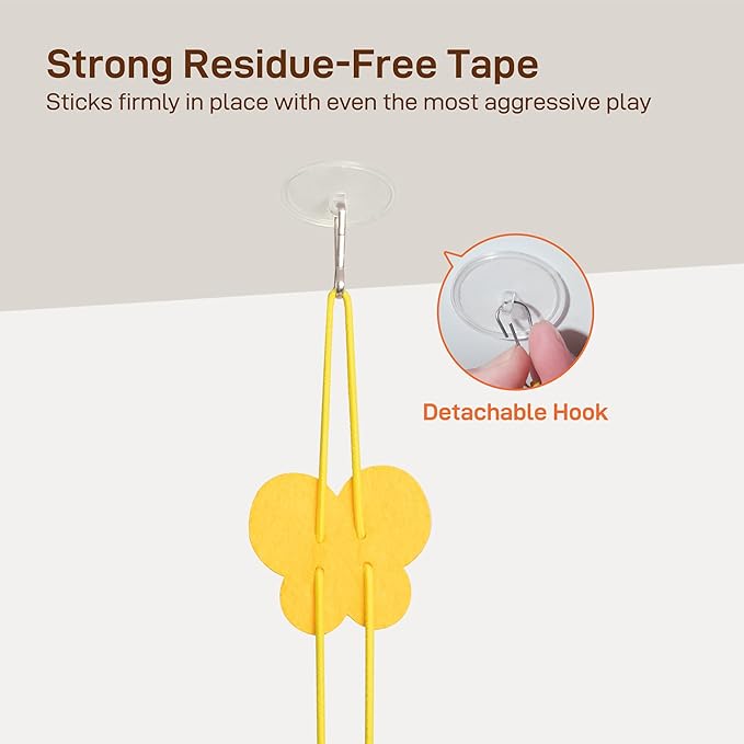 - Residue-Free Tapes: package includes strong nano adhesive tapes that won’t leave residue when removed. Nano tapes allow the elastic rope stick firmly to door frames, windows, table or elsewhere for your furry friends to play on their own