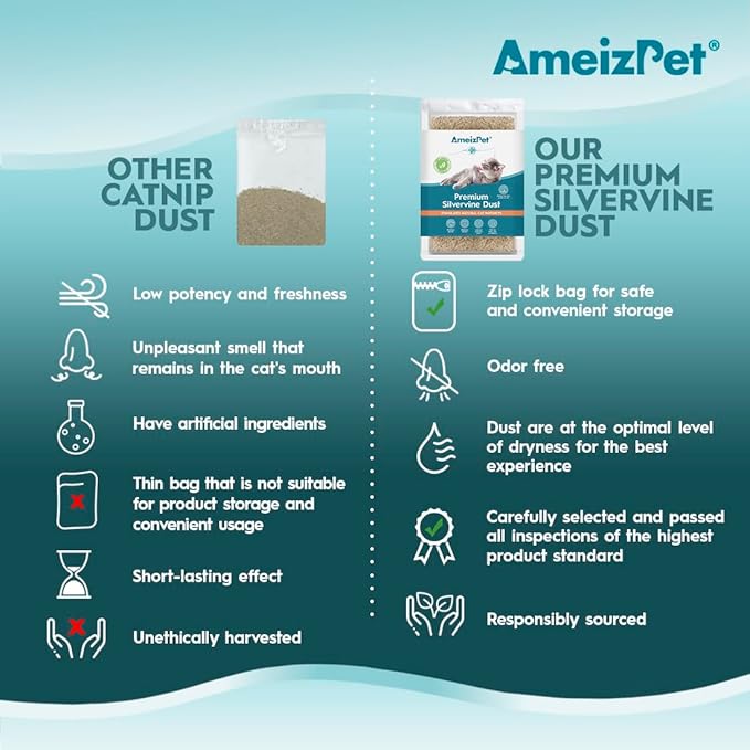 - DIVERSE USAGES. Sprinkle our versatile silvervine powder on toys, scratchers, the floor, and more to ignite an irresistible playtime experience for your kitty. Watch as they pounce, chase, and explore with newfound enthusiasm, stimulated by the enchanting aroma of the silvervine catnip alternative.
