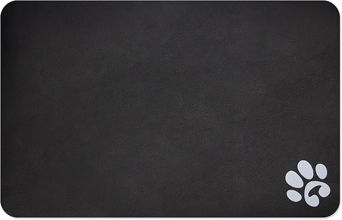 YCT Pet Cat Food Mats for Dog Food Mat, Cat Mat for Food, Pet Dog Cat Feeding Mat Eating Mat Pet Dog Cat Bowl Mats, Non-Slip Super Absorbent, with Footprints Logo,24 x 16.9 inches, Black