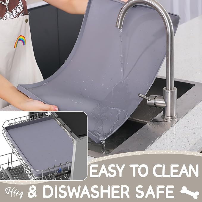 - Easy to Clean & Dishwasher Safe: You can fold the pet bowl mats for food and water to discard crumbs and rinse them down in a sink without deformation. Alternatively, the dog water matt for sloppy drinkers and dog matt for food and water bowl can be wiped down with a wet cloth. The pet water mat for dog bowl is also safe to clean in a dishwasher. If you have energetic pets, you can put the silicone pet food mats waterproof with edge under the pet food bowls every mealtime as they dry up quickly
