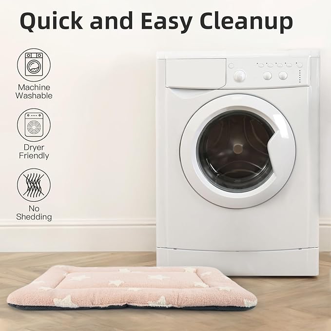 Mora Pets Dog Crate Pad Dog Kennel Bed Crate Mat for Large Dogs Washable Cute Star Pet Bed for Cage Ultra Soft Flat Pillow Cushion for Cozy Sleeping Anti-Slip Pink 42 x 27