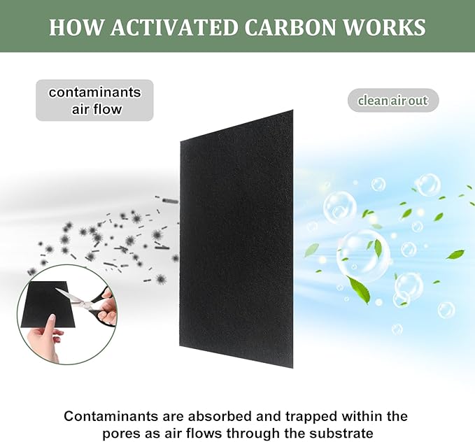 - 【HIGHLY ABSORBENT】These activated carbon filters (fibrous) are made of high-quality powdered activated carbon as the adsorption material, and the high-density polymer binding material is used to attach the carbon to the fiber