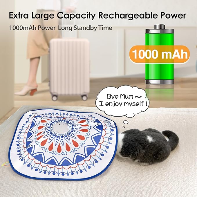 - 🔋【Ultra-Long Standby, Fun Endless】 To ensure that your cat can play for a long time, the automatic cat toy built-in rechargeable lithium battery that offers a long-lasting charge, which can satisfy your fur babies to play for several days. No need for frequent recharging, that would be a perfect choice for bored indoor cats ! Tips! please choose the adapter with 5V 1A/2A.