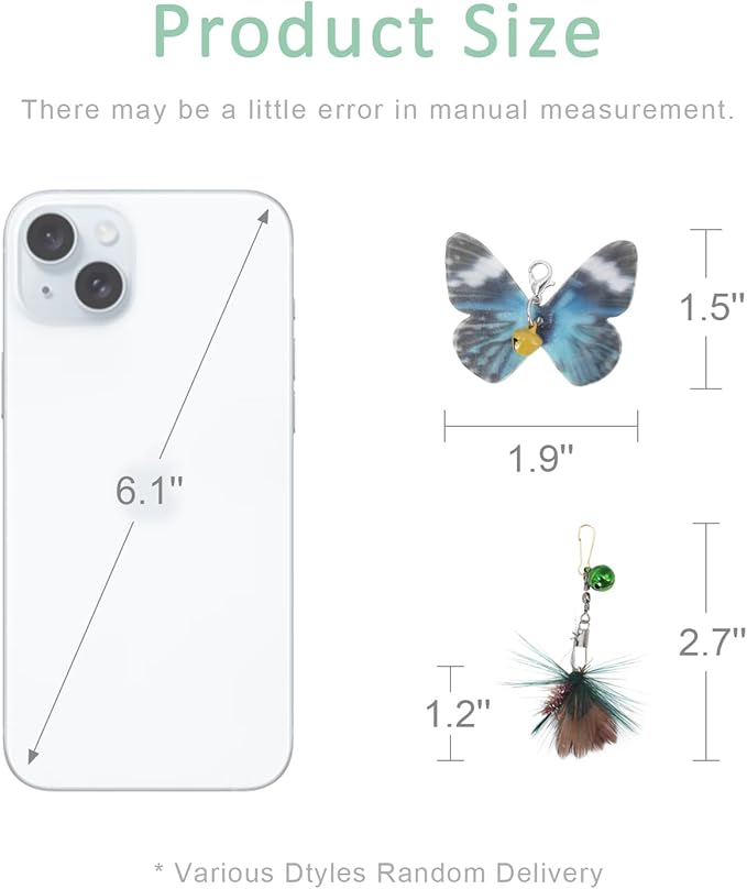 - More Small More Happy: The Vivid butterfly and insect cat toy attachments is the best choice for your sweet baby. It’s the nature that cat likes to catch and play with the little insect. That’s why people all say they have no ideal why their cat loves our cat wand toys so much. The answer is that is cat's nature! cat likes the little toy!