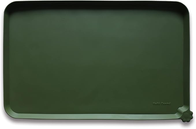 Hoki Found Large Silicone Pet Food Mats Tray - Waterproof Dog Pet Cat Feeding Mat - Non Slip Pet Dog Cat Food Bowl Mats Placemat -Pet Water Mats for Carpet - Dark Olive