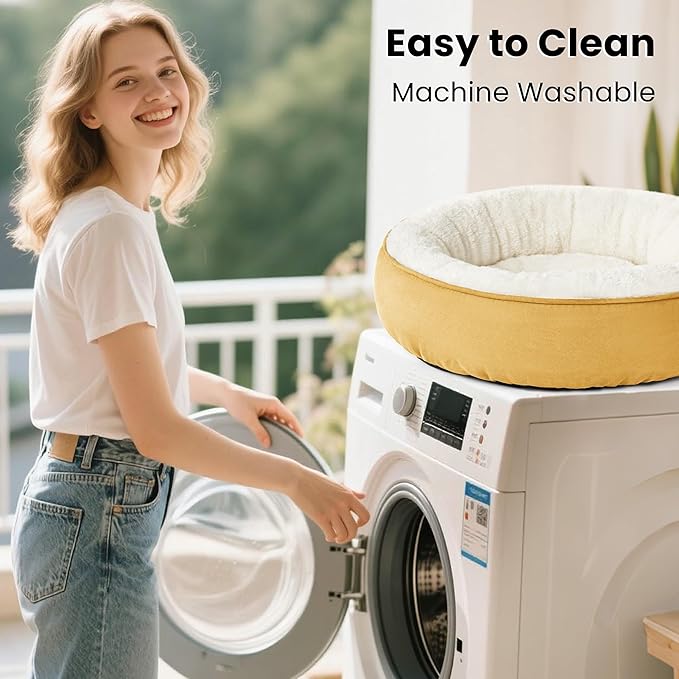 Love's cabin Round Donut Cat and Dog Cushion Bed, 25in Pet Bed for Small or Medium Dogs, Anti-Slip & Water-Resistant Bottom, Soft Durable Fabric Pet Beds, Washable Calming Cat & Dog Bed Yellow