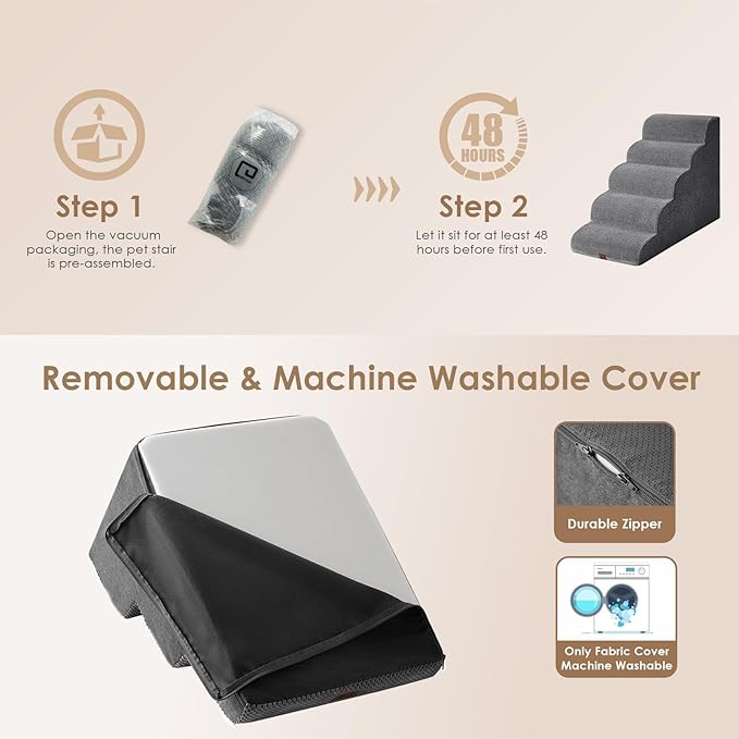 - EASY TO CLEAN - The dog step has a removable washable cover made of bonded fleece that can be hand washed or machine washed, so you don't require spending a lot of time cleaning it. It's very convenient.
